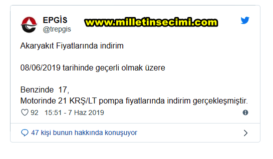Araç sahipleri dikkat! EPGİS’ten yapılan açıklamaya göre; bu gece yarısından itibaren benzinin litre fiyatında 17 kuruş, motorinin litre fiyatında ise 21 kuruş indirim geliyor. İndirimler pompaya yansıyacak.