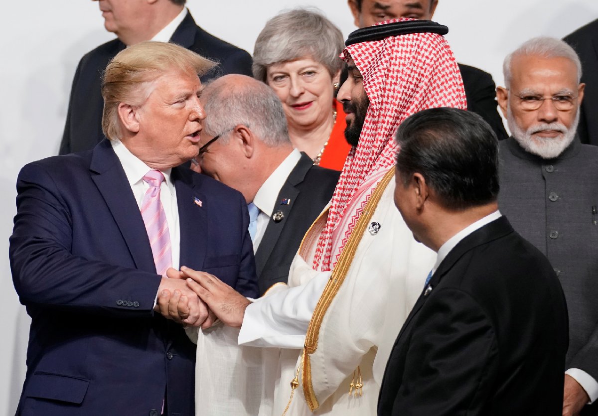Fotoğraf çekimi sırasında ABD Başkanı Trump ile Suudi Arabistan Veliaht Prensi Muhammed bin Selman’ın kameralar karşısındaki yakınlığı dikkat çekti.