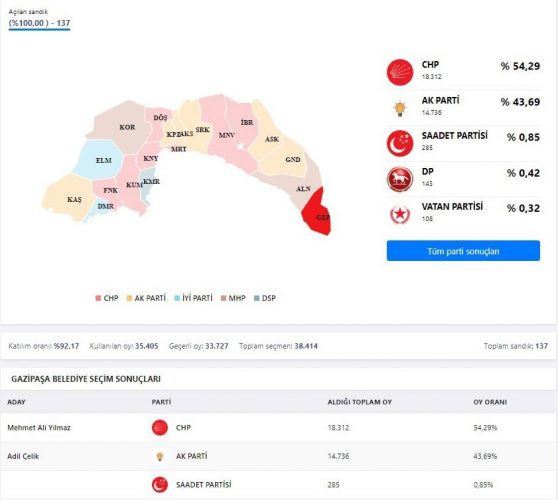 gazipaşa seçim sonuçları 31 mart 2019
