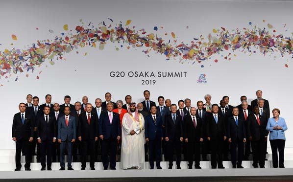 Dünyanın en büyük 20 ekonomisinin liderlerinin katılımıyla gerçekleştirilecek G20 Liderler Zirvesi başladı. Liderleri fotoğraf öncesi Japonya başbakanı Shinzo Abe karşıladı.
