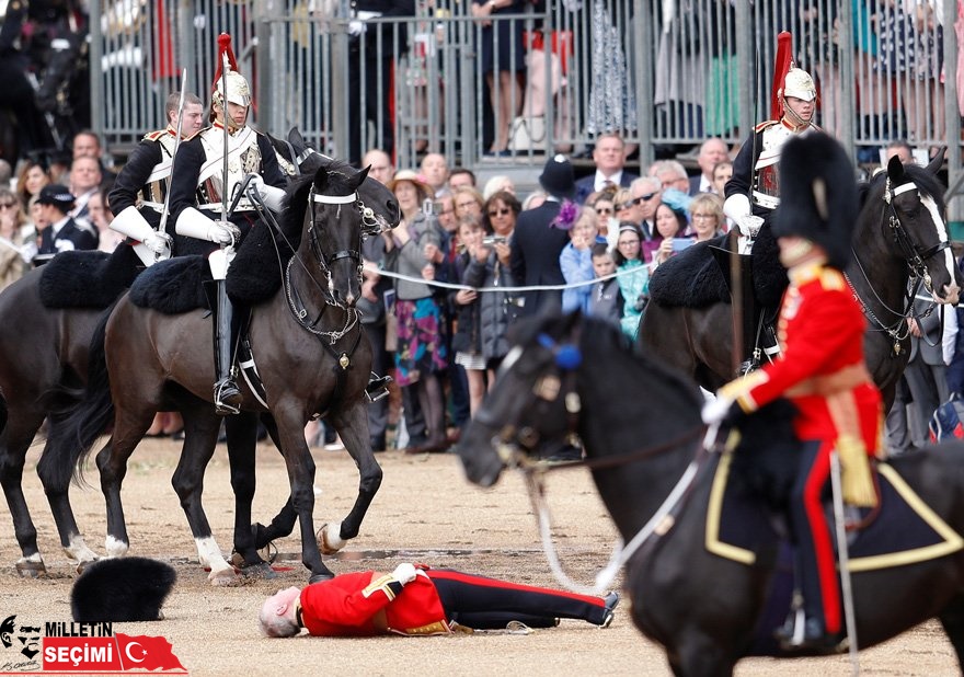 1400’ü aşkın asker, 300 at ve 400 müzisyenin katıldığı törende doğumdan sonra ilk kez kamera karşısına çıkan Meghan Markle da yer aldı. Etkinlik sırasında bir askerin bayılması korku dolu anlara sebep oldu.