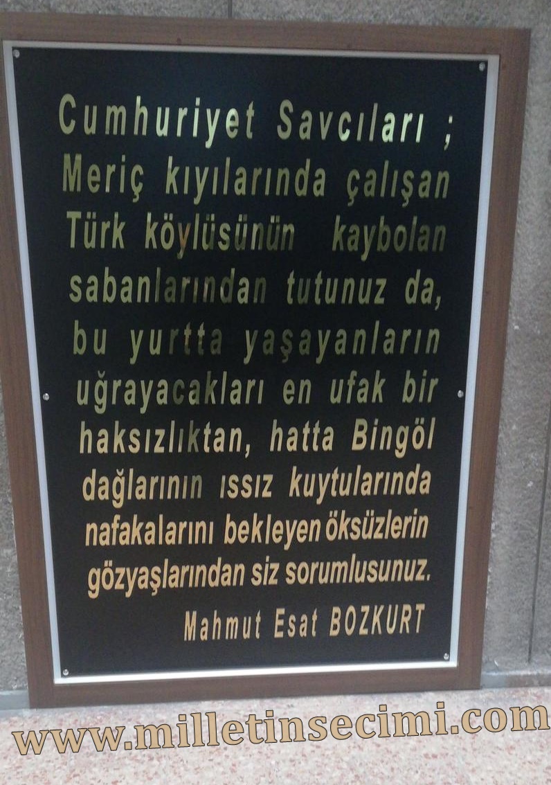 Mahmut Esat Bozkurt’un adliyeye asılan sözü ise şu şekilde: