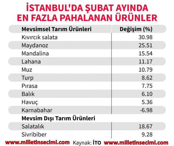 Tanzim kuyrukları Türkiye’nin gündemine otururken İstanbul Ticaret Odası şubat ayında fiyatı en fazla artan ürünleri sıraladı.
