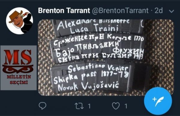 Tarrant’ın saldırıdan önce Twitter’dan 87 sayfalık manifesto yayınladığı da öne sürüldü. Söz konusu manifestoda Türklerle ilgili bir bölüm de yer alırken, şu ifadelere yer verilmiş: “Topraklarınızda huzur içinde yaşayabilirsiniz, size zarar gelmeyecek. Boğaz’ın Doğu yakasında. Ama Boğaz’ın Batı yakasında bir yerde yaşamayı denerseniz, Avrupa’ya gelirseniz sizi öldüreceğiz. Konstantinopolis’e gelir, tüm cami ve minareleri yıkarız. Ayasofya minarelerden kurtulacak ve Konstantinapol hak edildiği gibi tekrar Hristiyan şehri olacak.”